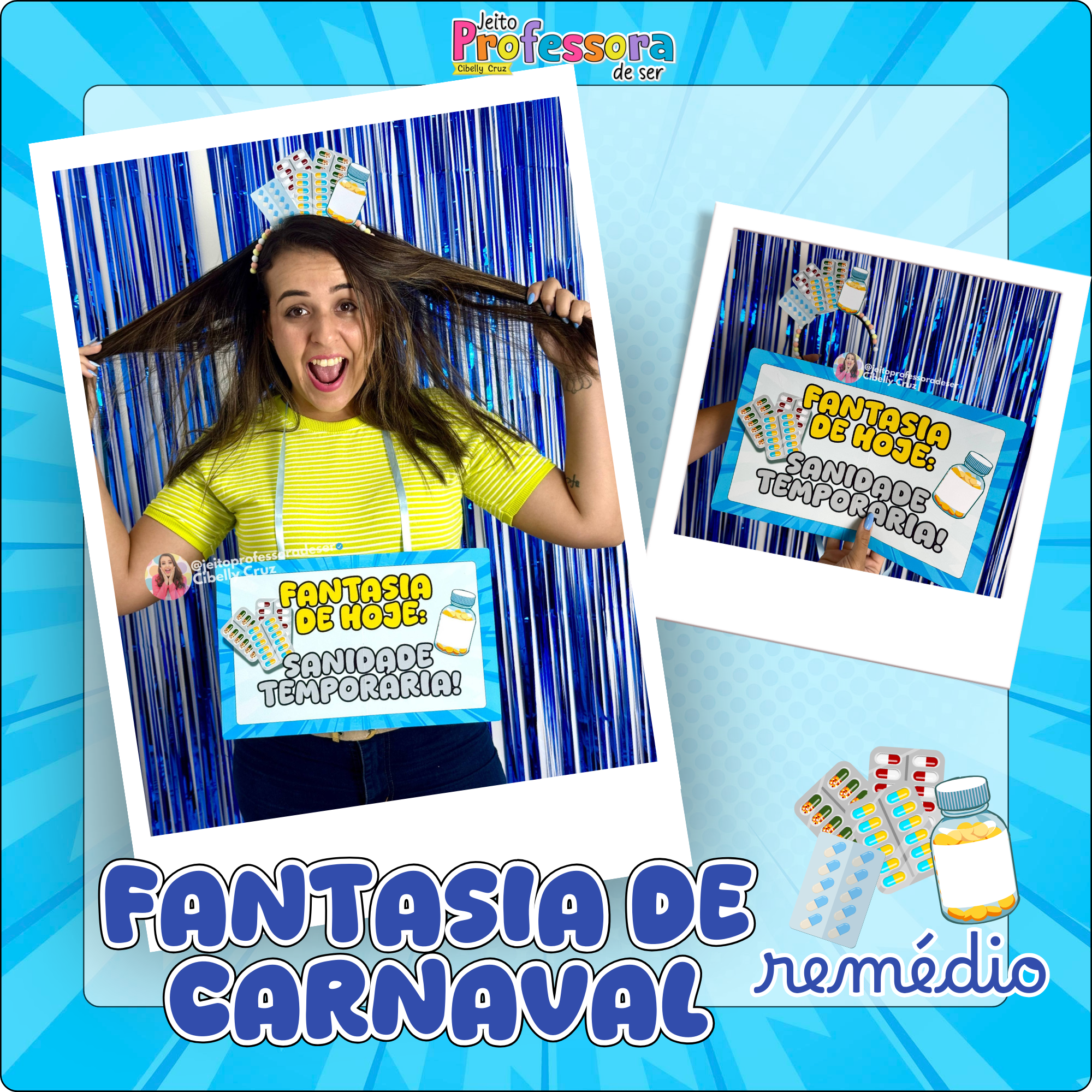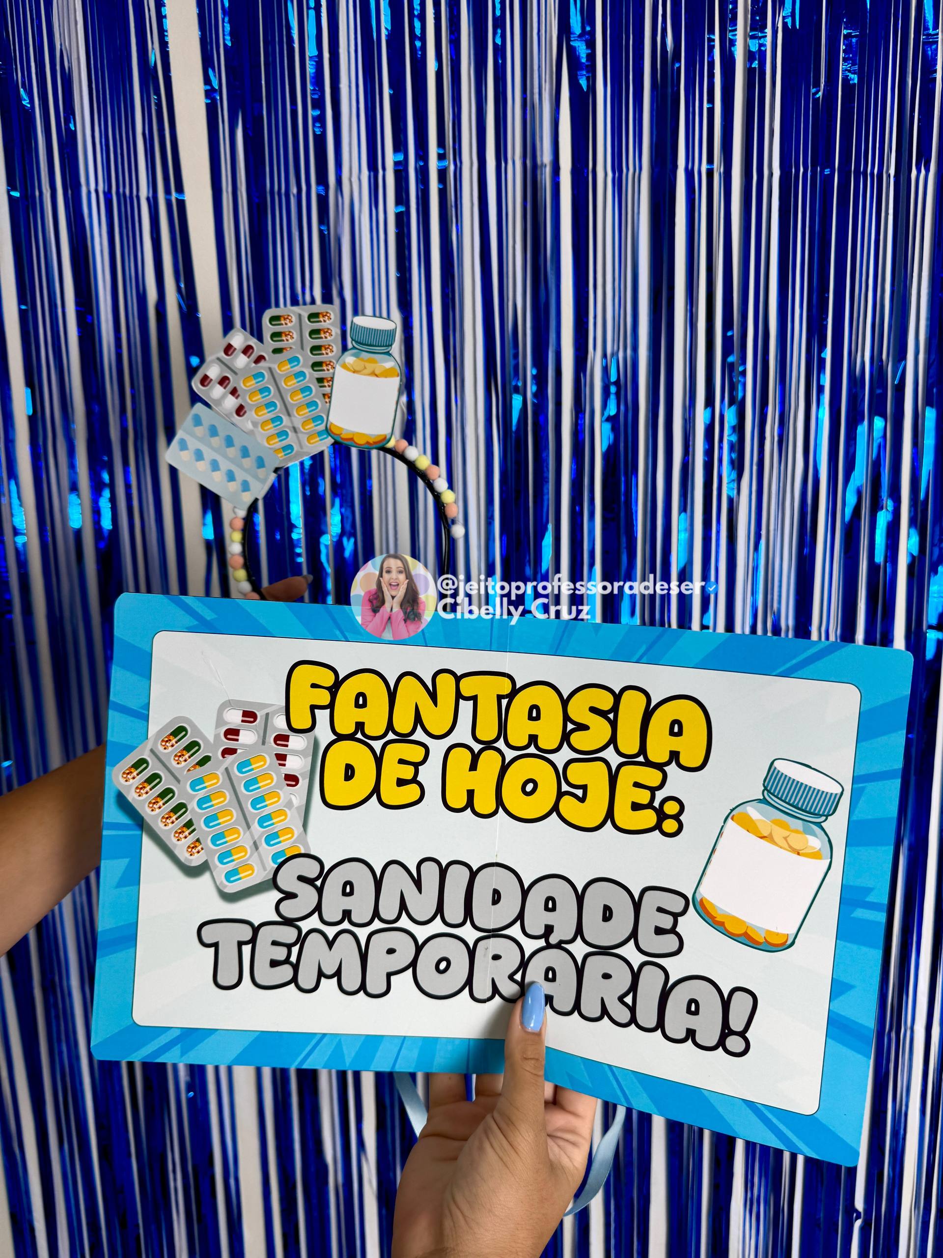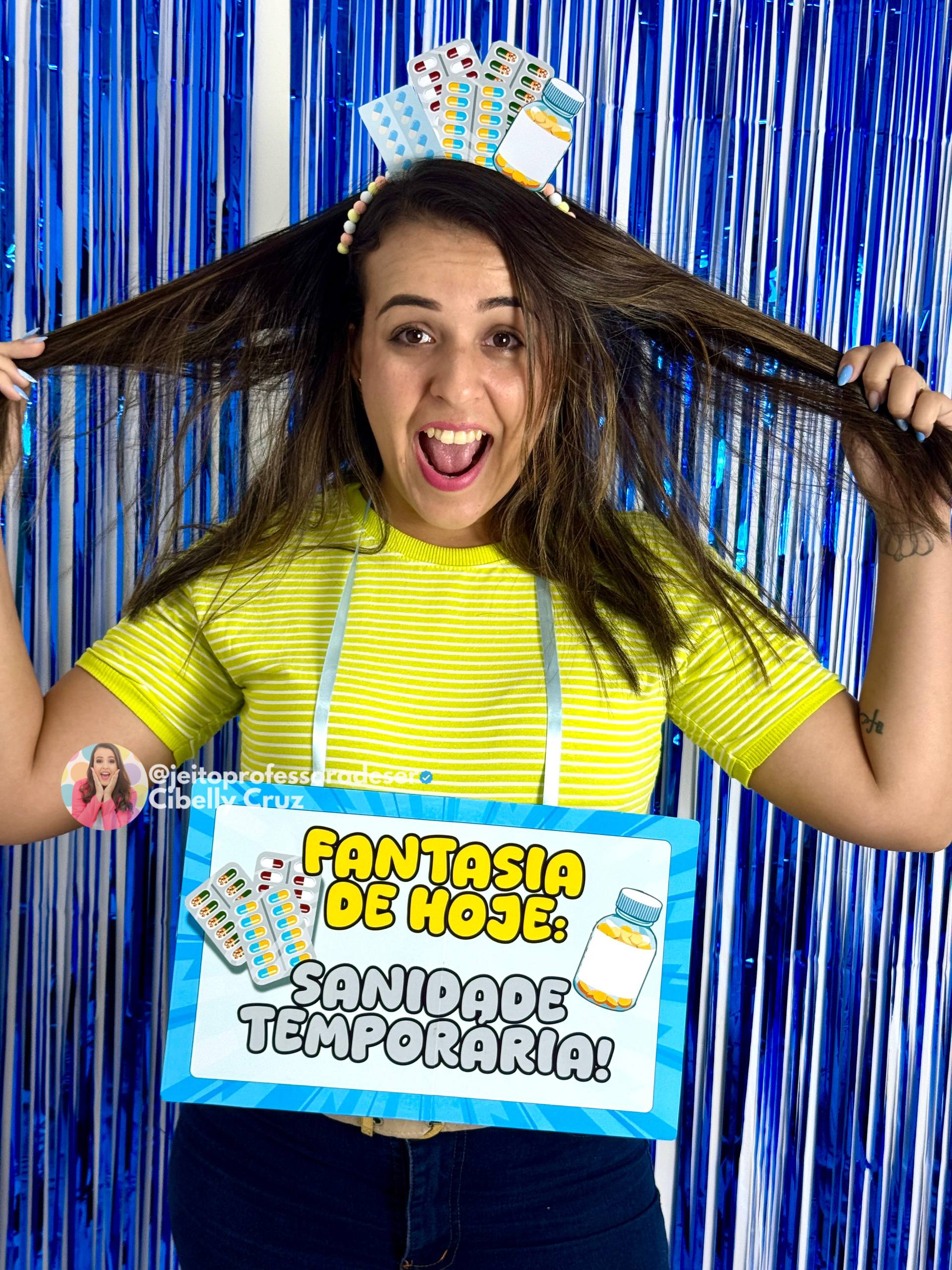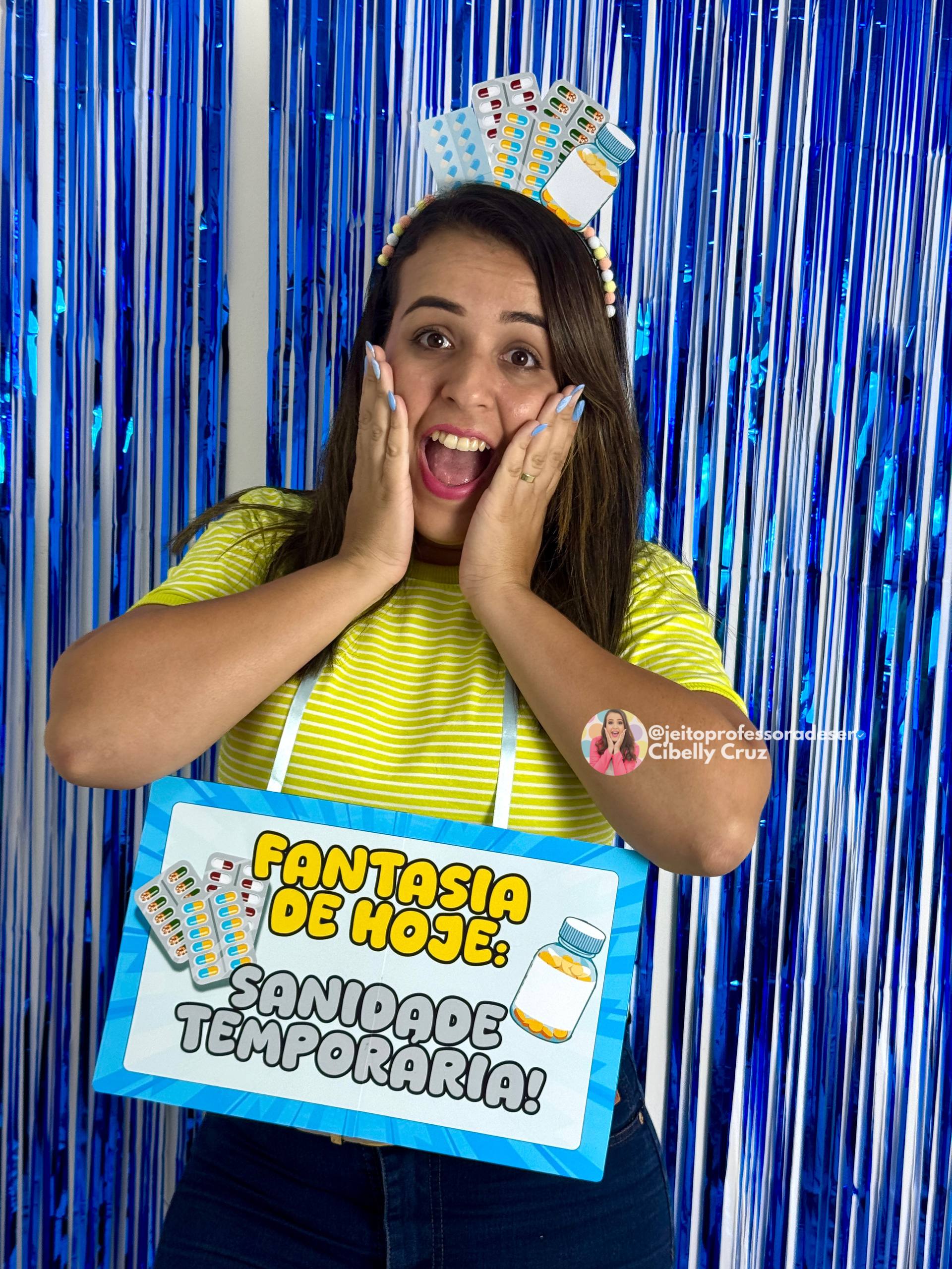Uma fantasia criativa, confortável e cheia de humor, perfeita pra representar aqueles dias intensos da rotina escolar, porque às vezes o que a professora precisa é só uma dose de sanidade temporária